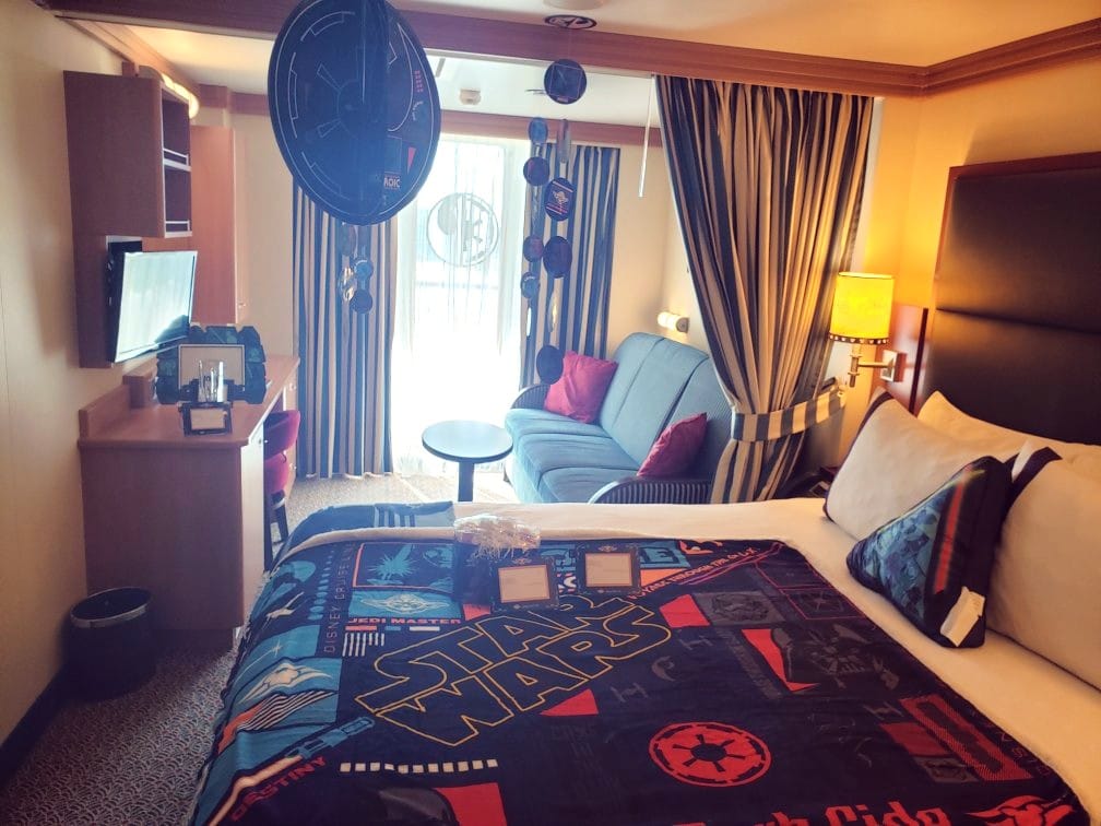 Our stateroom was decked out in Star Wars décor (an additional cost, but zero regrets). We’d splurged on a balcony so we could sit and watch the open sea whenever we wanted—and we used it. A lot.