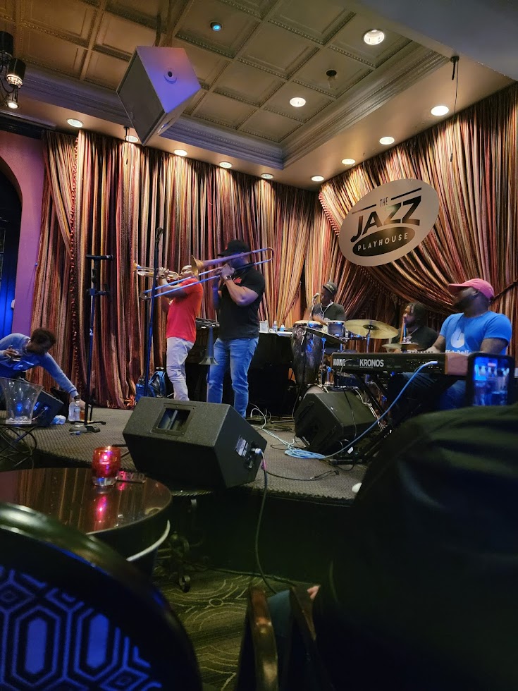 By evening, Luke and Lori had rejoined the land of the living and met us at The Jazz Playhouse to see the Brass-A-Holics, a go-go brass band blending New Orleans soul with D.C. funk. Somewhere between cocktails and trumpet solos, I finally found a pharmacy and bought Monistat. Big mistake.