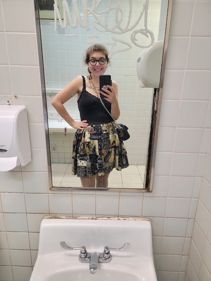 We wandered around Jackson Square, where local artists still display their work on the wrought-iron fences, and I picked up a cute skirt at Roadkill (see skirt below). At the French Market—the oldest public market in the U.S., dating back to 1791—I bought handmade steampunk jewelry and an overpriced umbrella I absolutely did not need but obviously bought anyway.