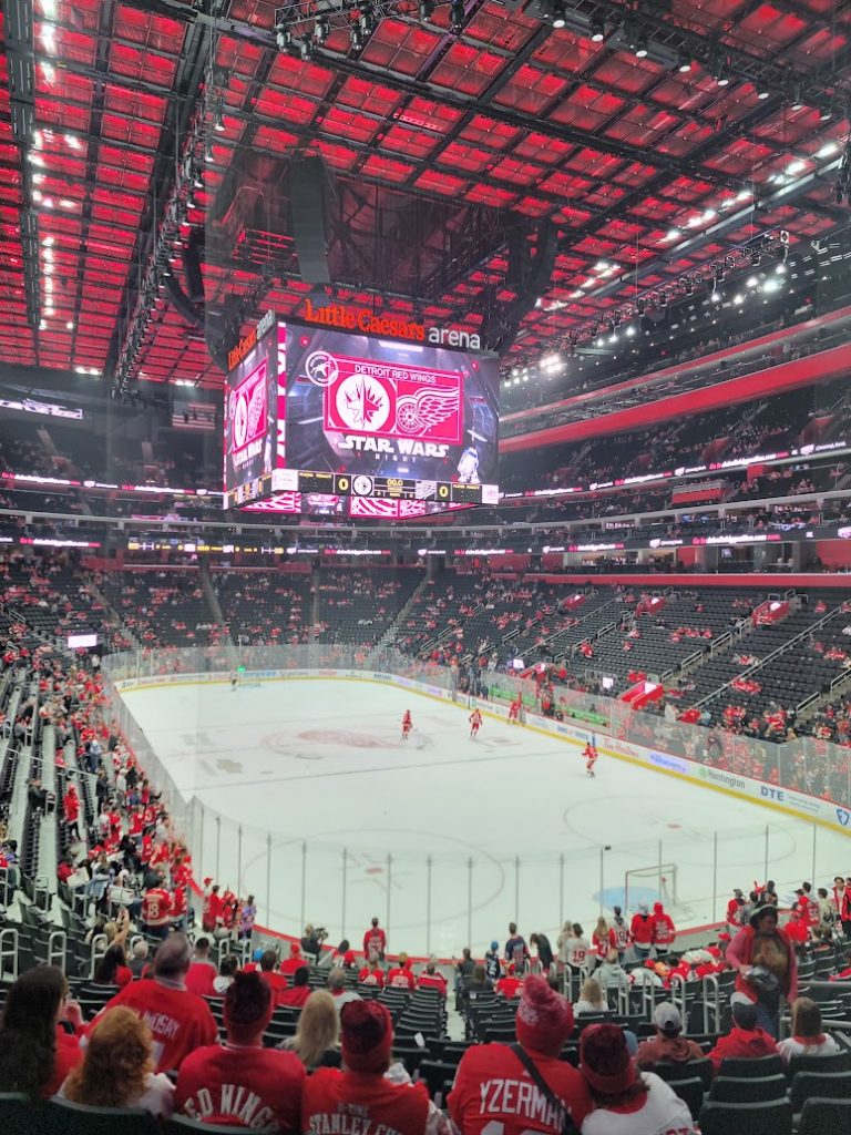 He’s the real fan. A lifelong believer who went to games with his grandpa back when the Joe was still home ice and Detroit’s glory days weren’t just memories. Hockey runs in his blood, passed down like an heirloom. When he invited us to come along for Star Wars Night, we figured: why not?