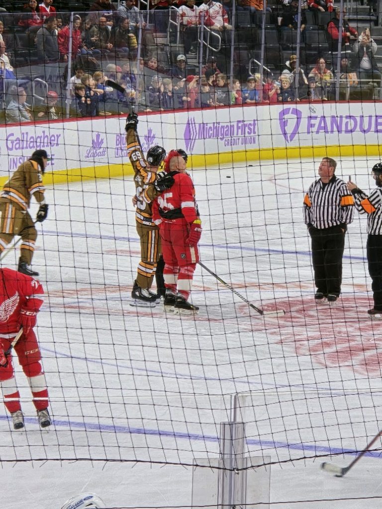 Not everything has been about regular season games. Last year we went to the Shoresy vs. Red Wings Alumni Game — pure chaos and pure fun. TV hockey antics on the same ice as legends like Justin Abdelkader, Dino Ciccarelli, Danny DeKeyser, Derian Hatcher, Jimmy Howard, Mike Knuble, Joey Kocur, Darren McCarty, Drew Miller, Mickey Redmond, Kevin Miller, Larry Murphy, John Ogrodnik, Ian White, Eddie Mio, and Gregg Malicke. Nostalgia, humor, and fandom all mixed up — and now one of those “we’re definitely doing this again” traditions.
