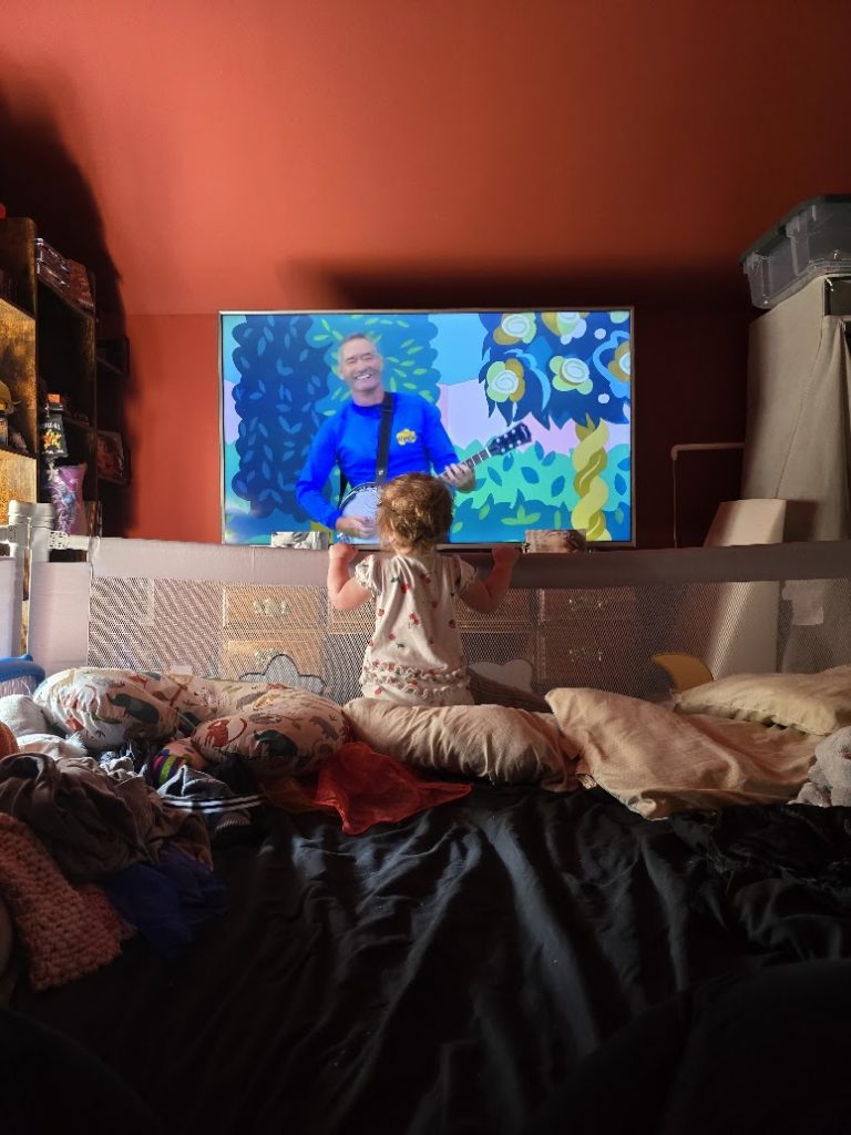 Once Evie got mobile, sticky fingers and grabby hands made glowing rectangles irresistible. And then Dave—of course—put on The Wiggles.