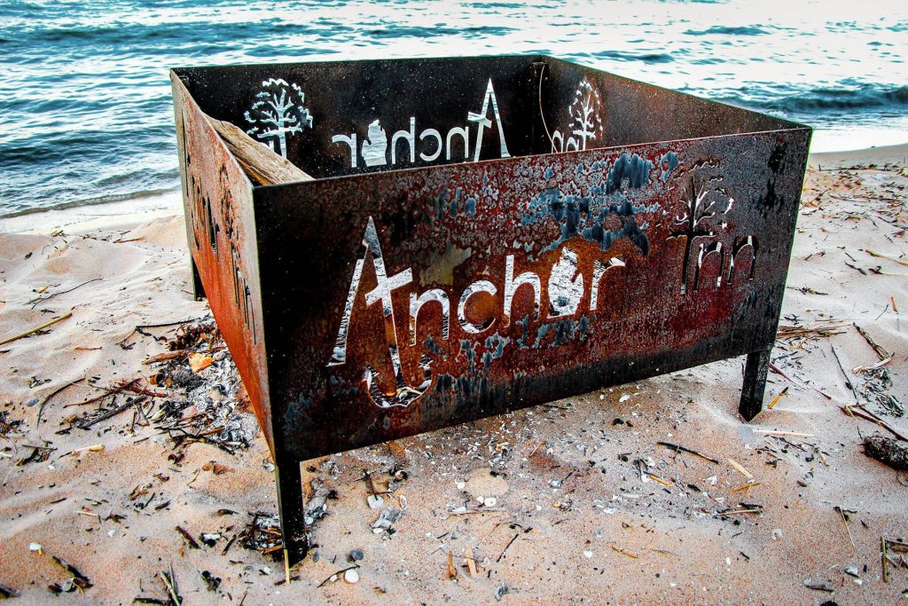 Fire pit on Anchor Inn on the Bay’s private beach in Traverse City (2016)—the kind of spot that feels like it’s seen a thousand summer nights and still has room for a thousand more.