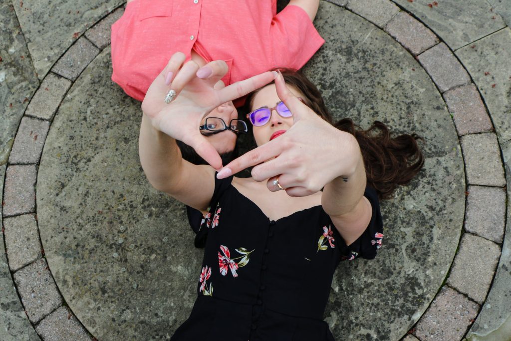 They laid down, intertwined, and immediately started goofing around, turning their hands into a little frame like they were directing their own movie. It’s playful, it’s creative, and it feels exactly like them.