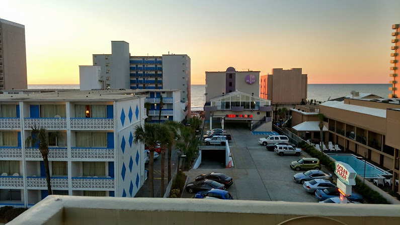 The next morning started like a postcardâsunrise spilling over the oceanfront hotels, everything glowing in that quiet, early light.
