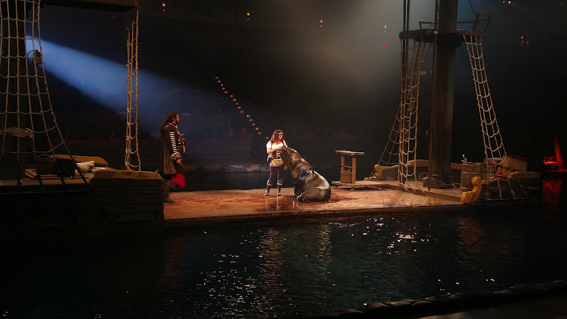 Itâs a full pirate-themed dinner show: acrobatics, diving stunts, live animals, a full storyline split between two pirate crews.